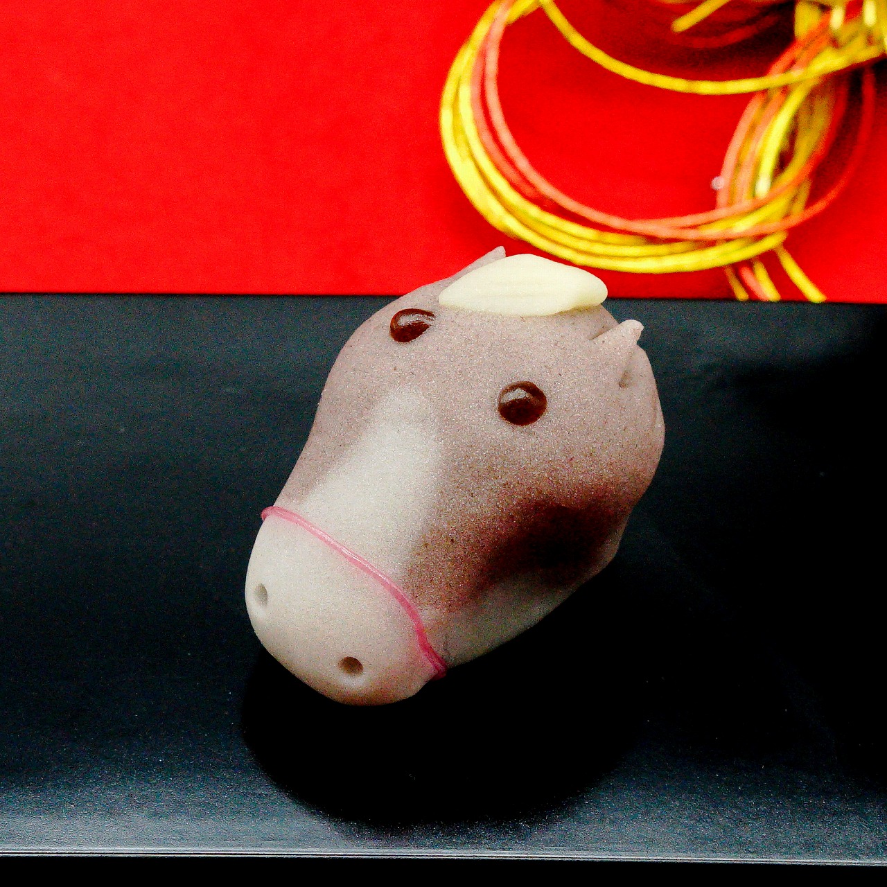 2026年の干支「午」、兼六園のことじ灯篭に咲く清らかで可愛らしい花「初梅」、縁起のいい「祝鯛」や「ねじ梅」やお正月らしい「初日」は、新年にふさわしい華やかな上生菓子です。