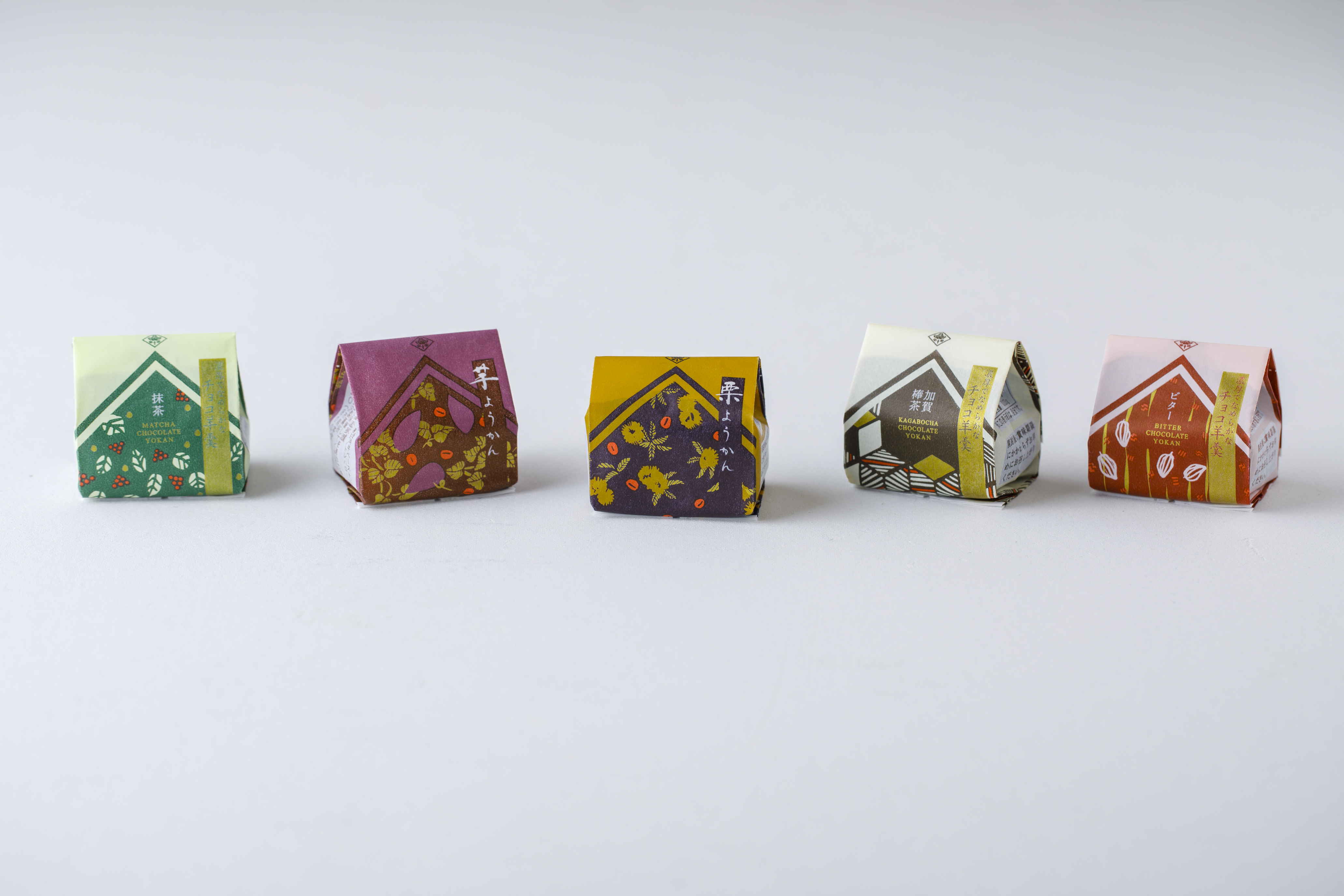 芋ようかん・栗ようかん・まるで生チョコのようなくちどけと濃厚な味わいの、ひと口サイズの洋風羊羹〈なめらかチョコ羊羹〉。