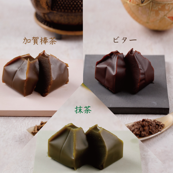 チョコ羊羹(ビター)1/チョコ羊羹(抹茶)1/チョコ羊羹(加賀棒茶)1/芋ようかん1】
